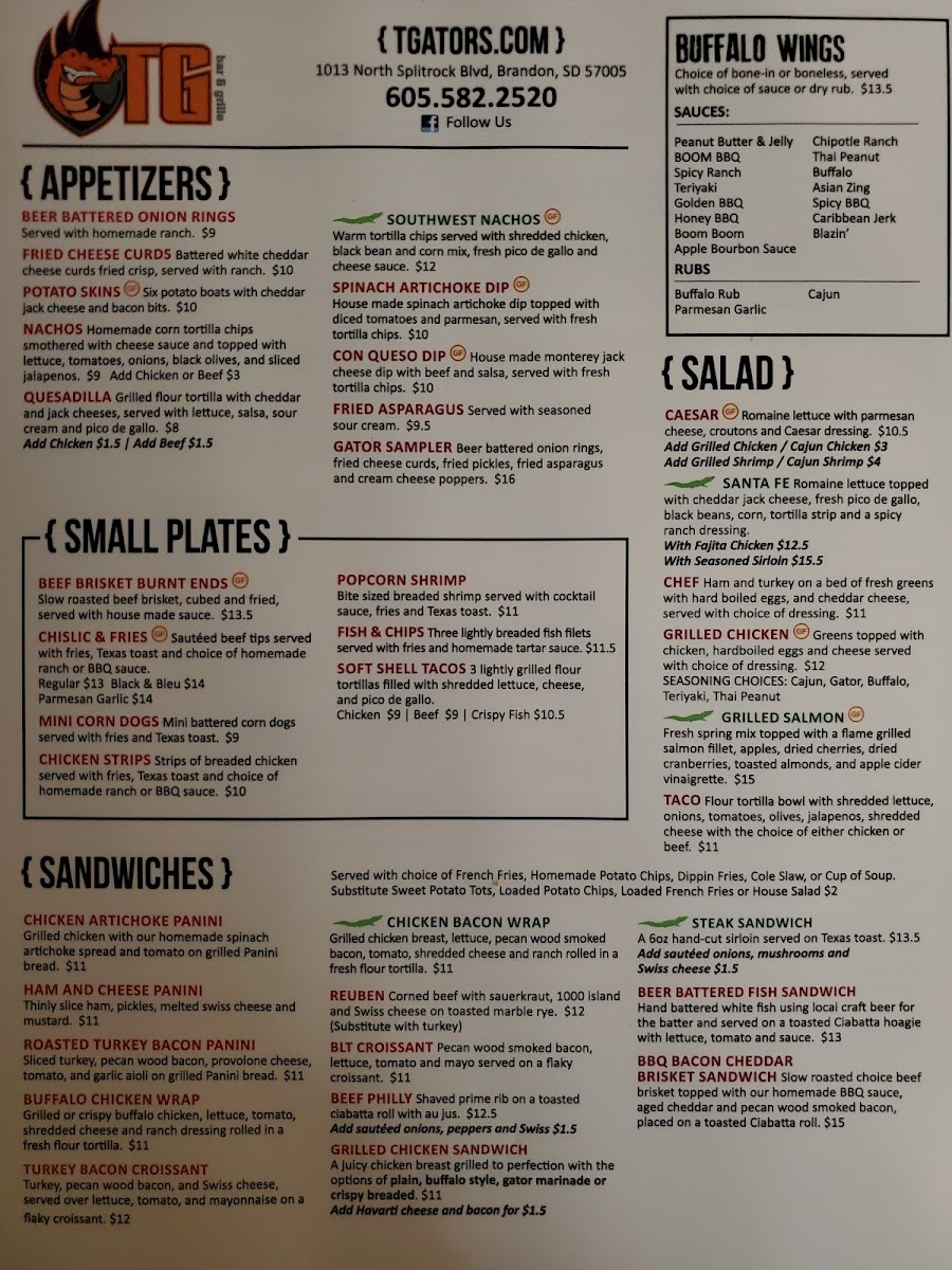 Welcome to Tailgator's, a delightful dining spot located at 1013 N Splitrock Blvd, Brandon, SD. This vibrant establishment offers an eclectic menu designed for both casual meals and special gatherings. Pizza lovers can customize their experience by building their own pizza with a choice of sauce and a five-cheese blend, or opt for signature options like the Meat Pizza or Greek Pizza, rich in flavors and fresh ingredients.