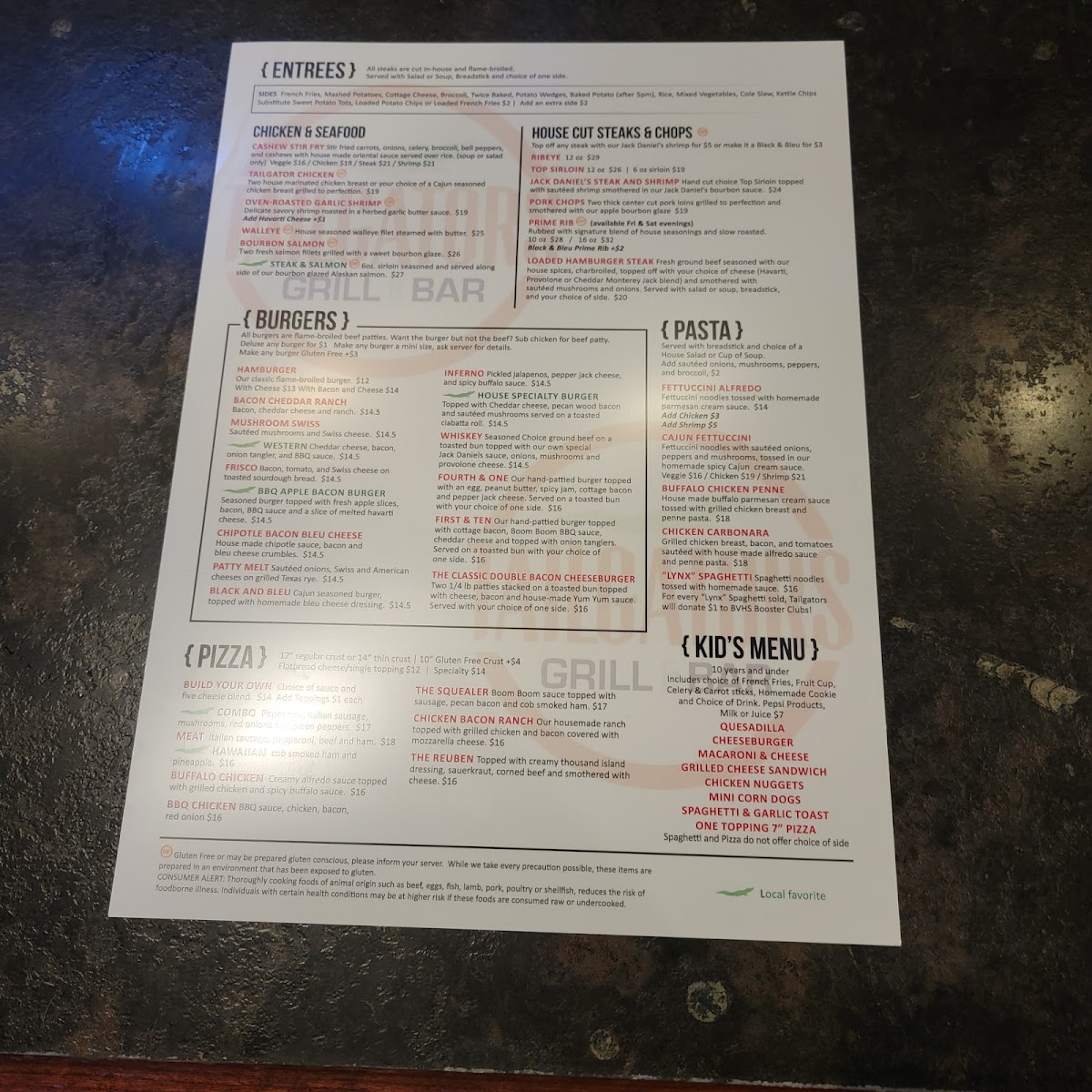 For those craving a bite before the main course, the appetizers shine with crispy Beer Battered Onion Rings and Fried Cheese Curds, perfect for sharing with friends. Don't miss the South of the Border section, featuring Grilled Fish Tacos and a hearty Smothered Burrito, delivering a zesty twist to your meal.
